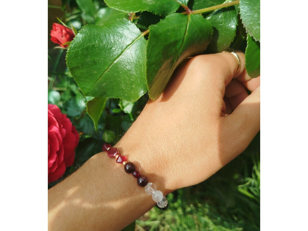 Síla & energie – praskaný křišťál & granát, 6 mm